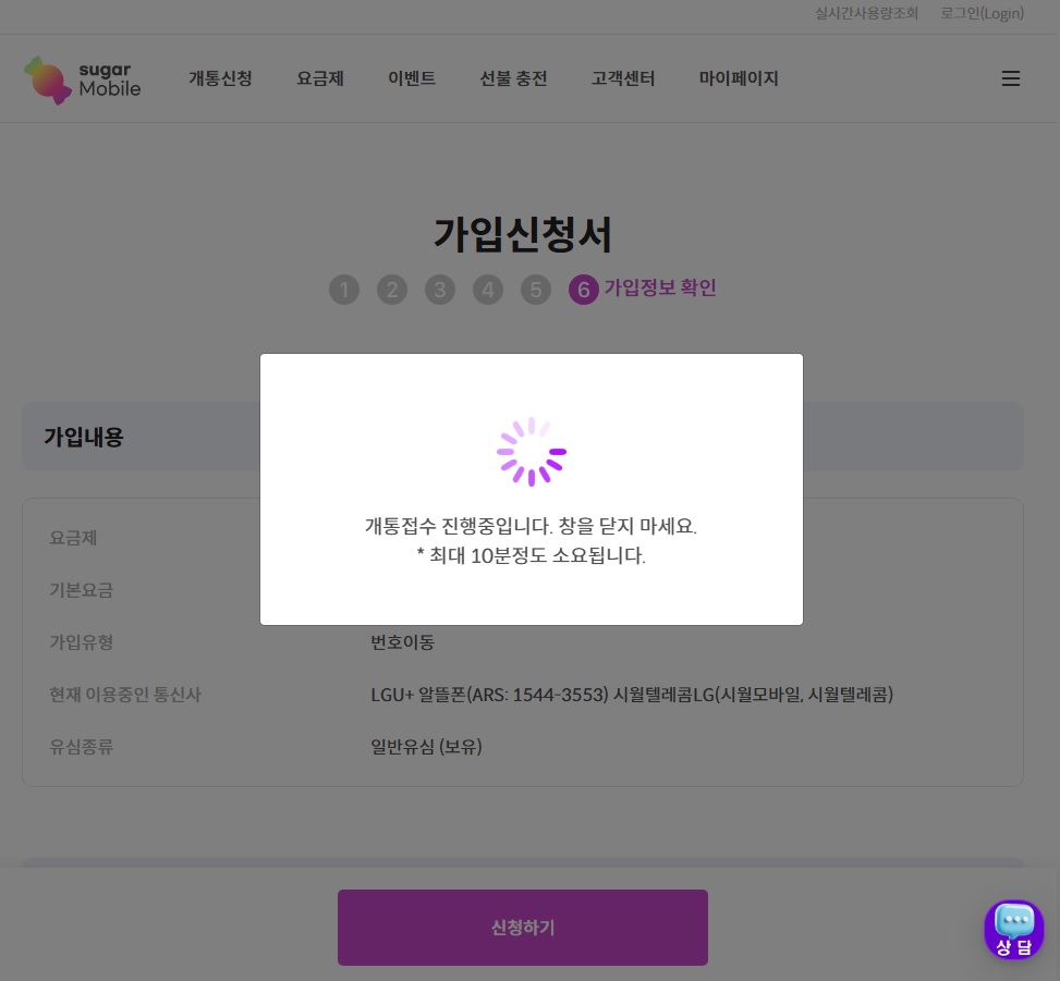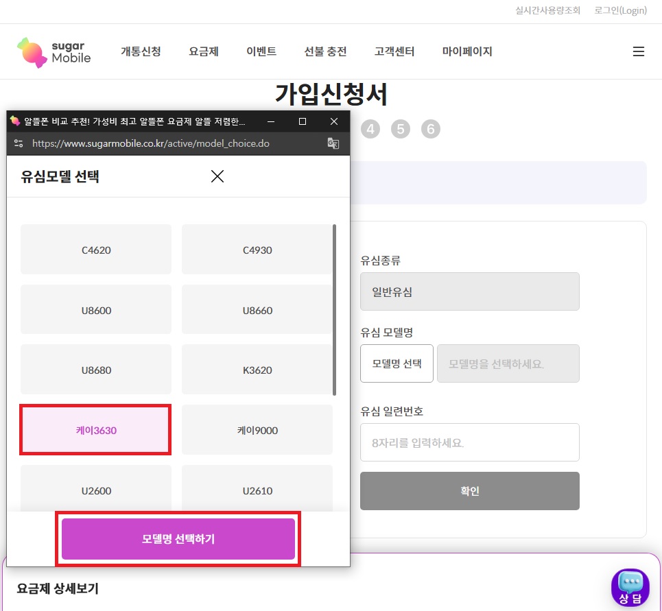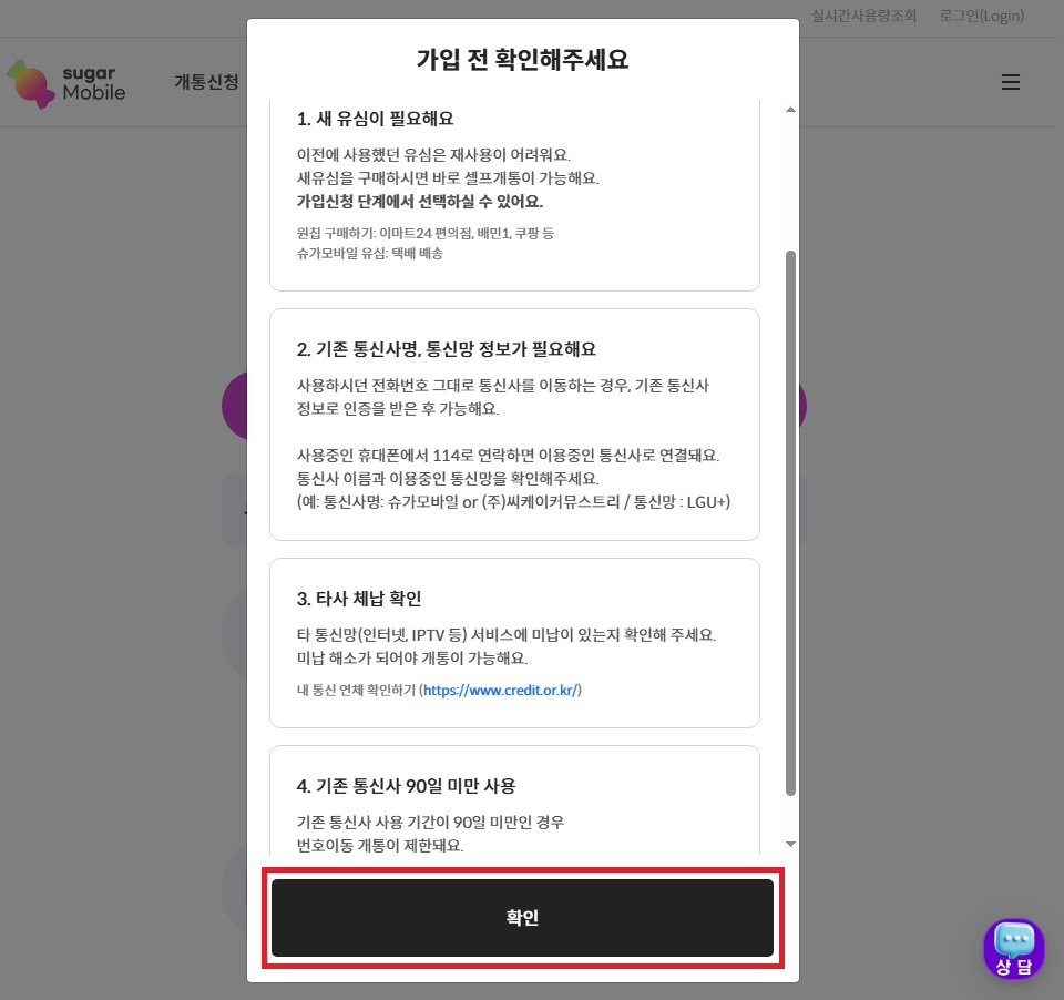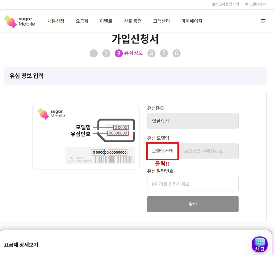01. 슈가모바일 사이트에서 해당 상품을 찾아 가입하기 버튼 클릭 !!