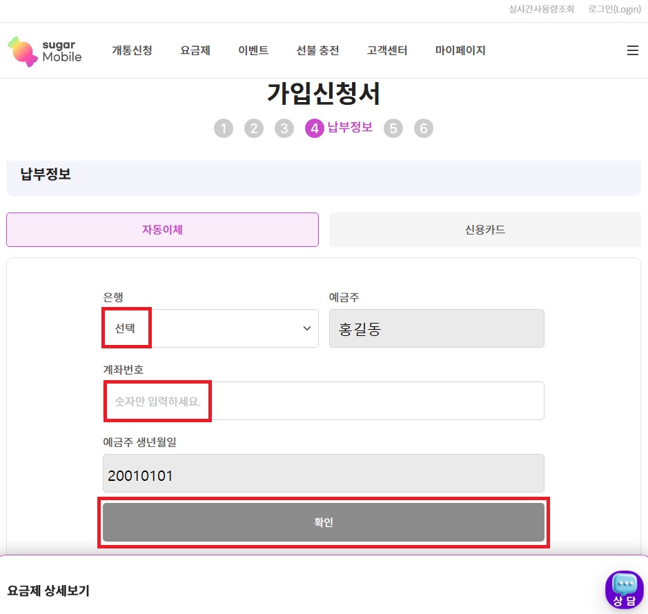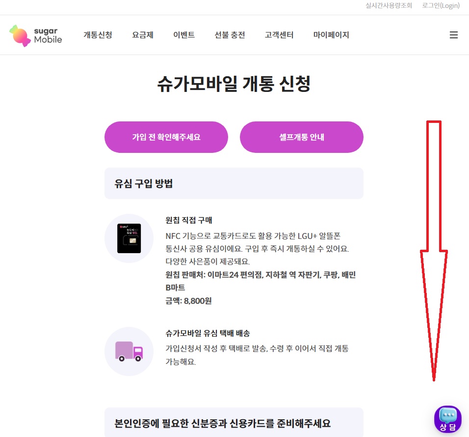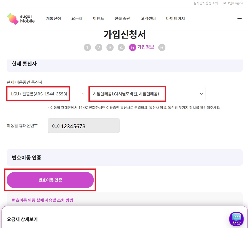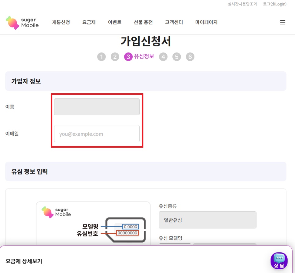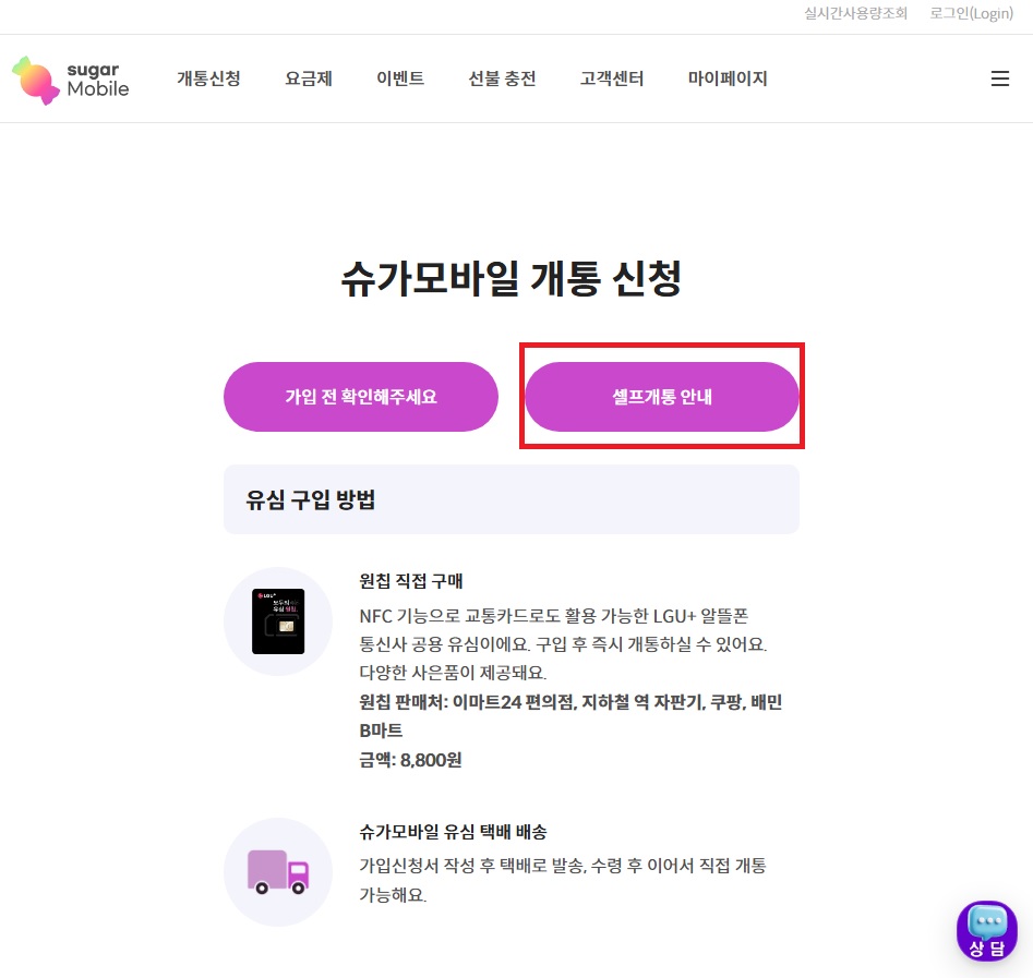 01. 슈가모바일 사이트에서 해당 상품을 찾아 가입하기 버튼 클릭 !!