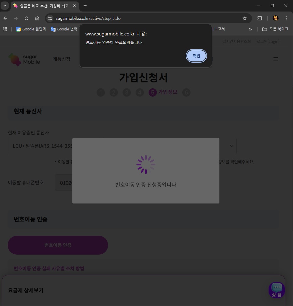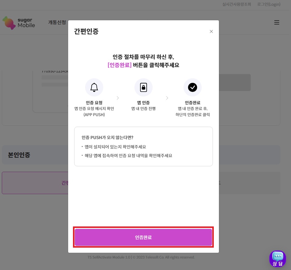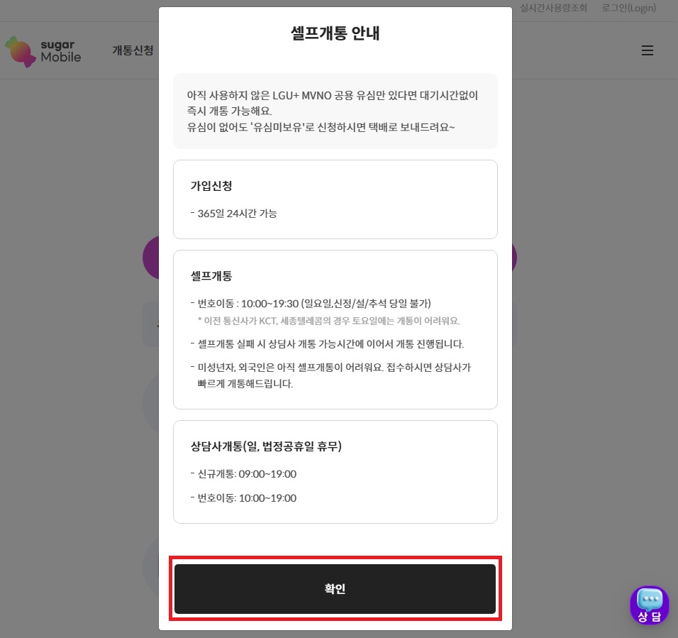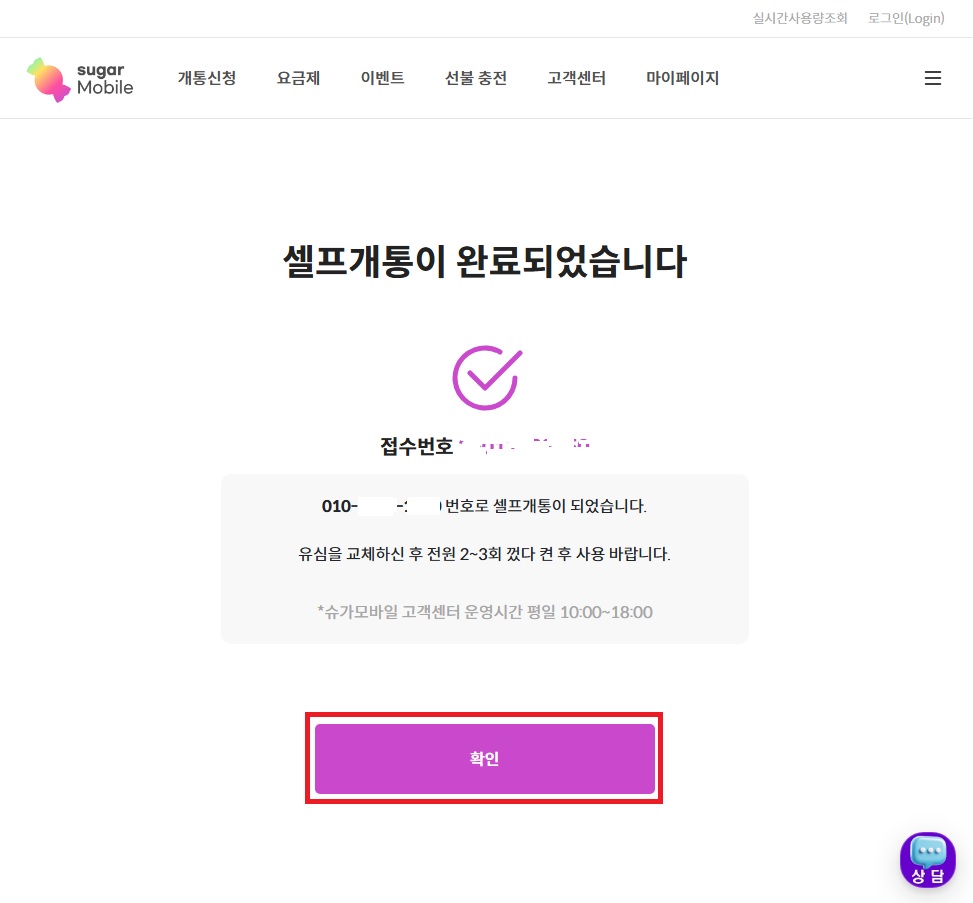 37. 셀프개통이 완료되었다고 나오면 확인 클릭 !!