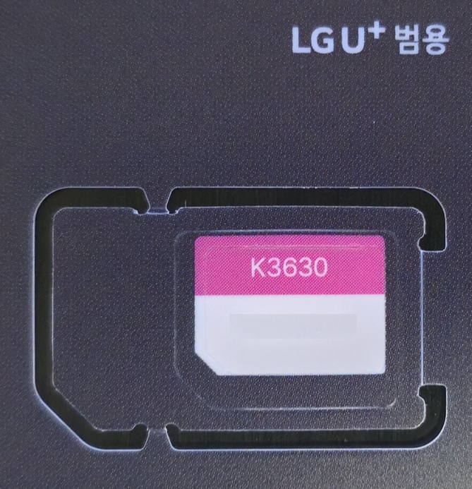 18. 편의점에서 사온 유심을 보면 붉은색 영역에 K3630 이라고 적혀있는데 이게 모델명이다.