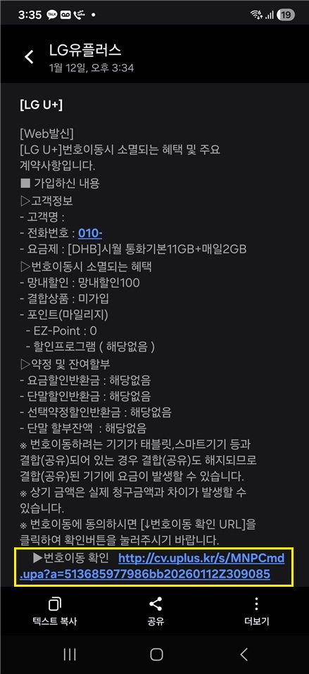 31. 처리가 되었다고 나오면 기존 통신사 이용은 끝 !!