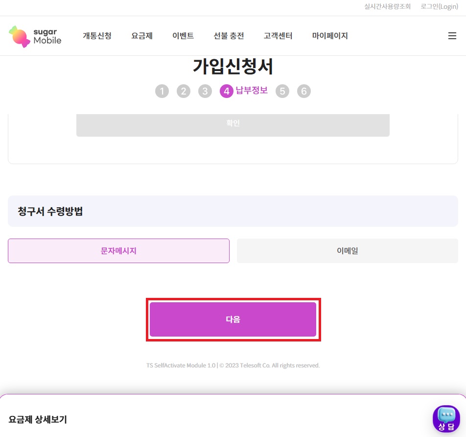 26. 청구서 수령방법 선택 후 다음 클릭 !!