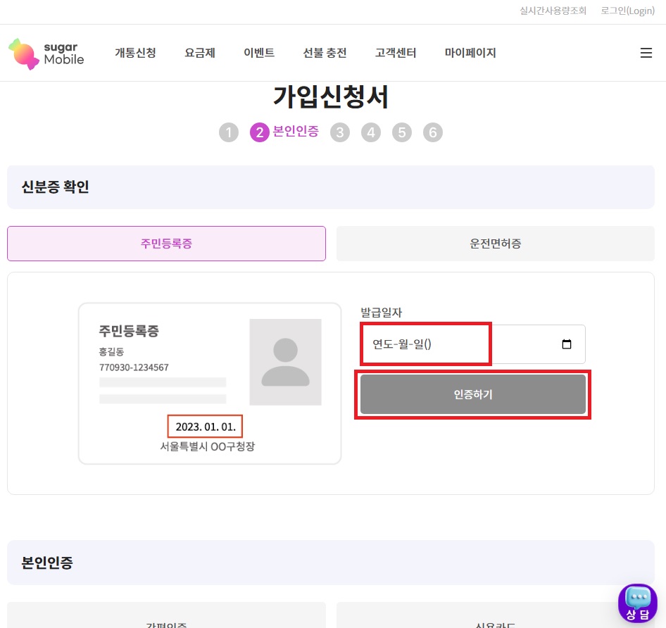 11. 신분증 정보 입력 후, 인증하기 클릭 !!